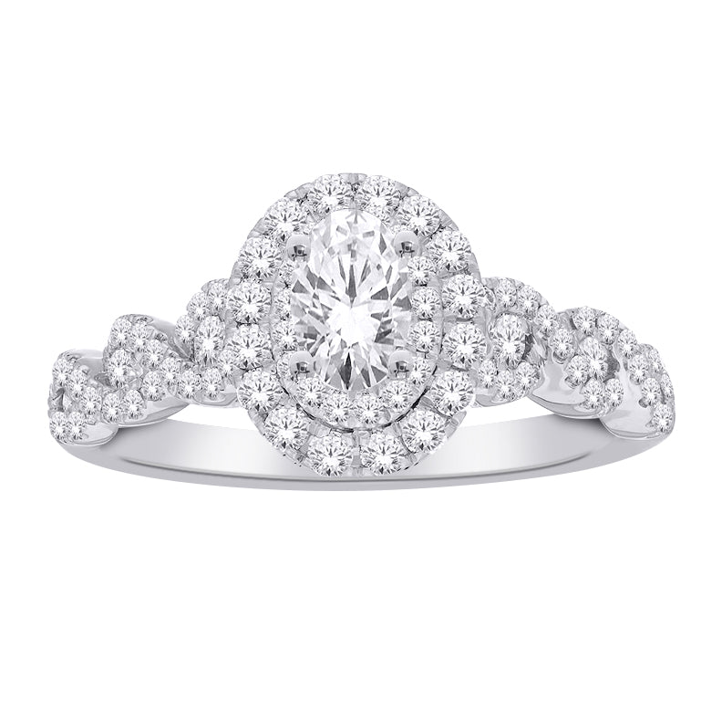 14kw 1.50ctw Lab Diamond VS/D-E 1.04ct Oval Cut Center Halo Engagement Ring
