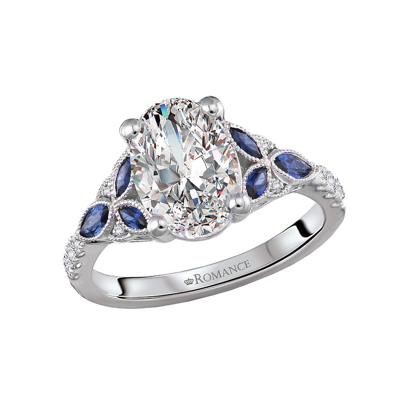 Semi-Mount Diamond and Sapphire Engagement Ring