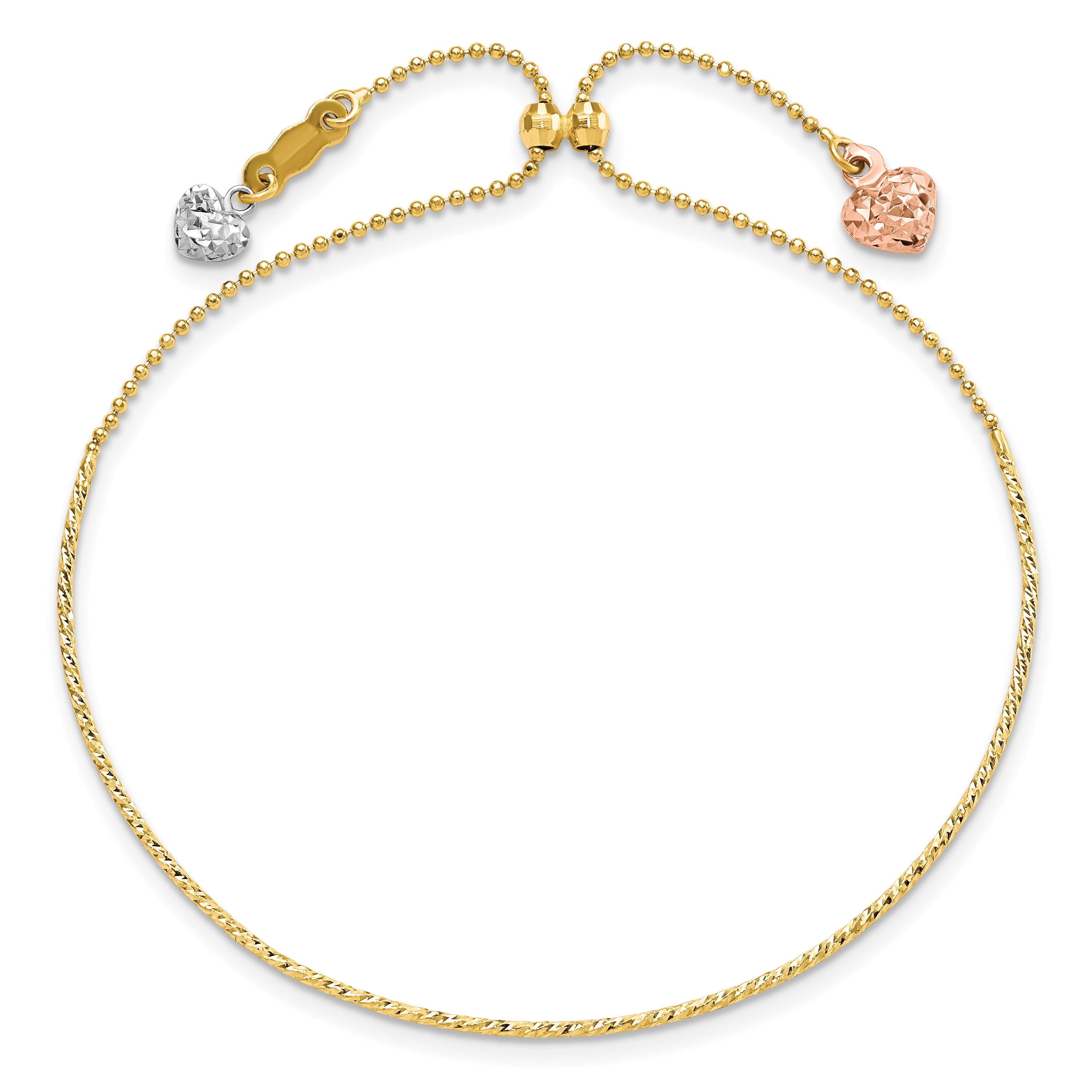 14K Tri-color D/C Heart Adjustable Bracelet