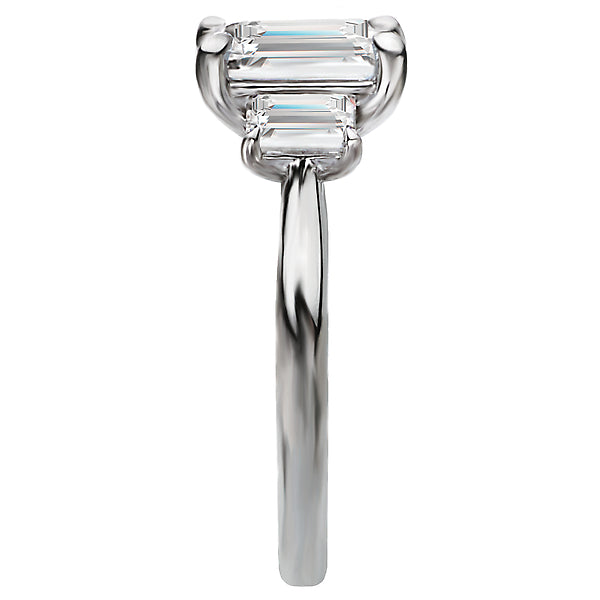 Lab Grown DiamondThis stunning all-time classic semi-mount engagement ring is made to your unique specifications. The ring shown has two 4.7x2.7x3.5mm trapezoid cut diamonds flanking a center setting that will accommodate an 8.5x6.5mm emerald cut diamond. When ordered, we will create your custom ring to fit the exact specifications you provide in the metal of your choice 14kt, 18kt, or platinum. (D 3/8-1/2 carat total weight) Price varies reflecting customization.