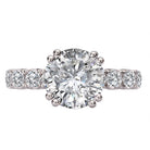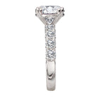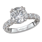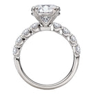14kt white gold semi-mount engagement ring with 8 round diamonds lining the band on either side of a center setting that will accommodate an 9.0mm round diamond. (D 3/4 carat total weight)