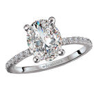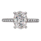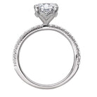 Gorgeous french pave diamond ring crafted high polished 14kt white gold with a fancy peg head center. (D 1/5 carat total weight) This ring is a SEMI-MOUNT and it comes with NO CENTER STONE as shown but it will accommodate a 9.5x7.5mm oval center stone.