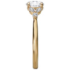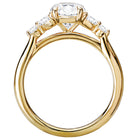 This beautiful 14kt yellow gold semi-mount engagement ring has a trio of marquise and round diamonds on either side of a setting that will accommodate a 6.5mm round diamond. (D 1/5 carat total weight)