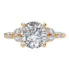 This beautiful 14kt yellow gold semi-mount engagement ring has a trio of marquise and round diamonds on either side of a setting that will accommodate a 8.2mm round diamond. (D 1/4 carat total weight)
