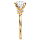 14kt yellow gold semi-mount engagement ring with clusters of round diamonds on either side of a center setting that will accommodate a 8.2mm round diamond. (D 1/7 carat total weight)