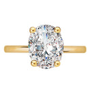 This 14kt yellow gold semi-mount engagement ring has a hidden halo of diamonds underneath a center setting that will accommodate a 11.5x8mm oval shaped diamond. (D .08 carat total weight)