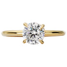 This 14kt yellow gold semi-mount engagement ring has a hidden halo of diamonds underneath a center setting that will accommodate a 6.5mm round diamond. (D .06 carat total weight)