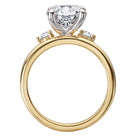 14kt yellow gold double domed band with two round diamonds on either side of a center setting that will accommodate a 8.2mm round diamond. (D 1/4 carat total weight)