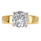 14kt yellow gold wide band featuring a hidden halo of diamonds under a center setting that will accommodate an 8.2mm round diamond. (D 1/8 carat total weight)