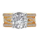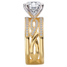 14kt yellow gold infinity band semi-mount diamond engagement ring with a center setting that will accommodate a 8.2mm round diamond. (D 1/3 carat total weight)