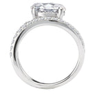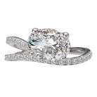 14kt white gold wave shank band lined with round diamonds accenting a center setting that will accommodate a 11x7mm oval shaped diamond. (D 3/8 carat total weight)