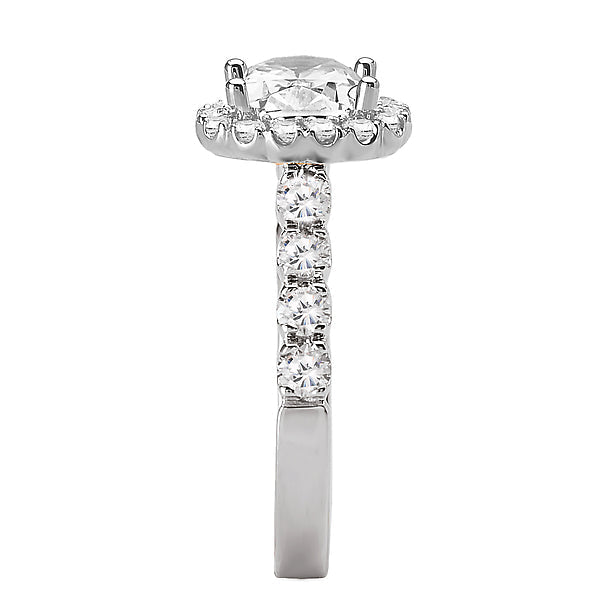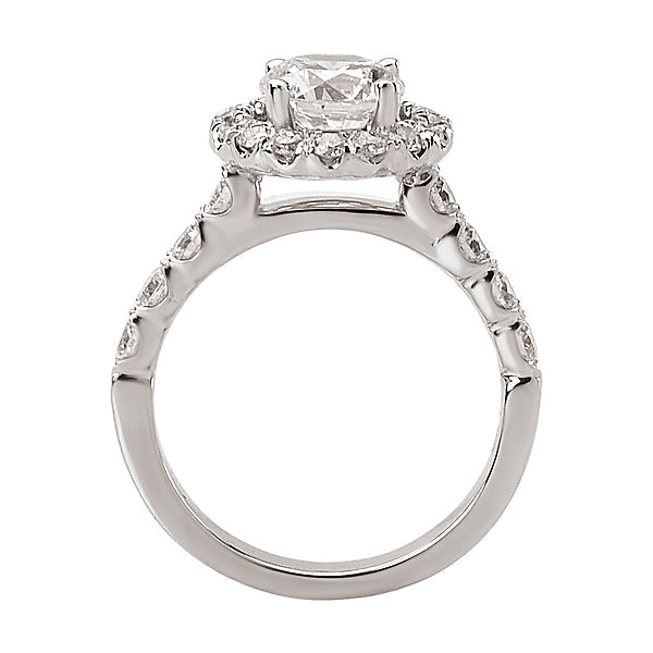 Round Halo Diamond Ring in 14kt White Gold (D 3/4 carat total weight) This item is a SEMI-MOUNT and it comes with NO CENTER STONE as shown but it will accommodate a 6.5mm round center stone.