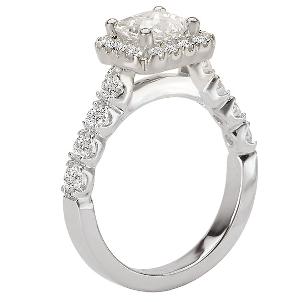 Square Halo Diamond Ring with Round Micro-Set Side Stones in 14kt White Gold. (D 3/4 carat total weight) This item is a SEMI-MOUNT and it comes with NO CENTER STONE as shown but it will accommodate a 5.5mm princess cut center stone.