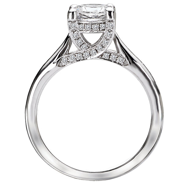 Round Diamond Trellis Ring in 14kt White Gold (D 1/7 carat total weight) This item is a SEMI-MOUNT and it comes with NO CENTER STONE as shown but it will accommodate a 6.5-7mm round center stone.