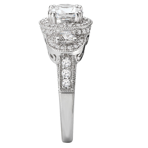 Triple Round Halo Diamond Ring with Milgrain Detail in 14kt White Gold (D 1.0 carat total weight) This item is a SEMI-MOUNT and it comes with NO CENTER STONE as shown but it will accommodate a 6.5mm round center stone.