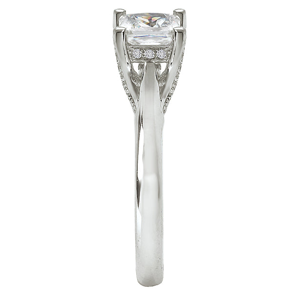 Trellis Diamond Ring in 14kt White Gold. (D 1/7 carat total weight) This item is a SEMI-MOUNT and it comes with NO CENTER STONE as shown but it will accommodate a 5.5-6mm princess cut center stone.