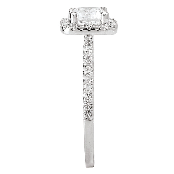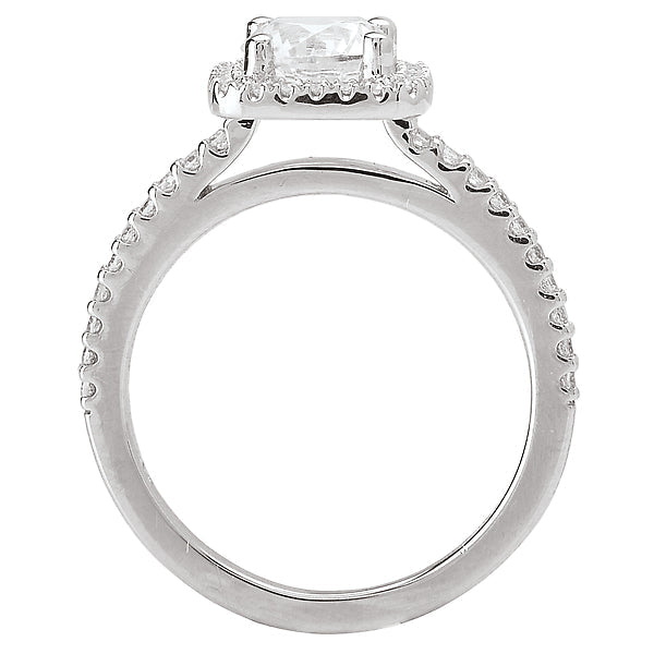 Diamond Ring in 14kt White Gold with a Square Halo. (D 1/4 carat total weight) This item is a SEMI-MOUNT and it comes with NO CENTER STONE as shown but it will accommodate a 6.5mm round center stone.