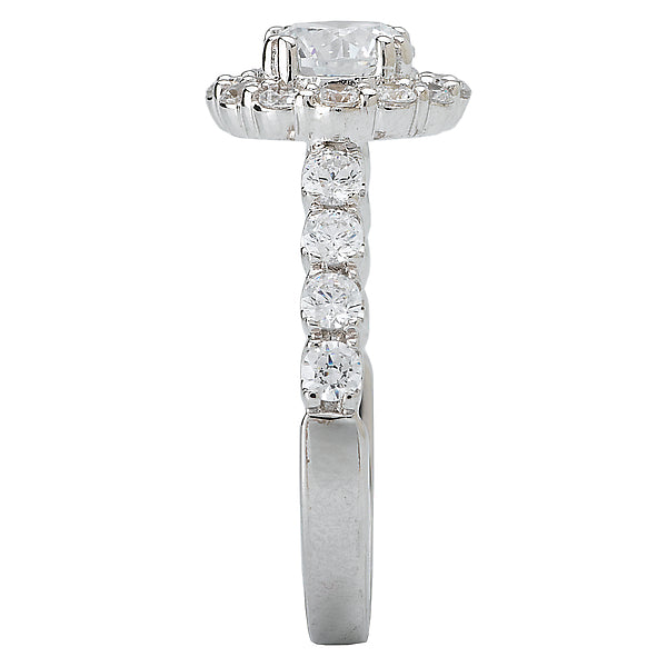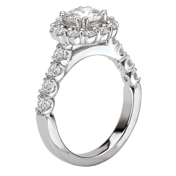 Round Halo Micro-Set Diamond Ring in 14kt White Gold. (D 7/8 carat total weigh) This item is a SEMI-MOUNT and it comes with NO CENTER STONE as shown but it will accommodate a 6.5mm round center stone.