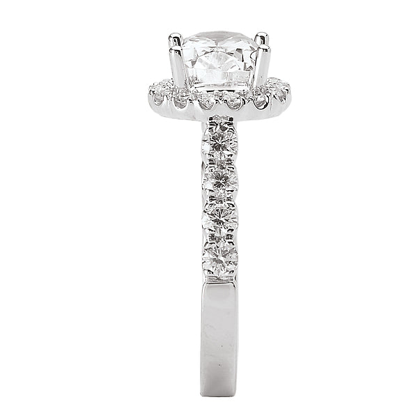 Micro-Set 14kt White Gold Diamond Ring with Oval Style Halo. (D 3/4 carat total weight) This item is a SEMI-MOUNT and it comes with NO CENTER STONE as shown but it will accommodate a 7.5x5.5mm oval center stone.