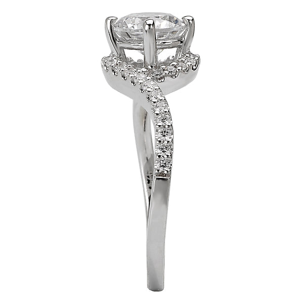 Diamond Romance Engagement Ring in 14kt White Gold with Swirl Design. (D. 1/4 carat total weight) This item is a SEMI-MOUNT and it comes with NO CENTER STONE as shown but it will accommodate a 6.5mm round center stone.