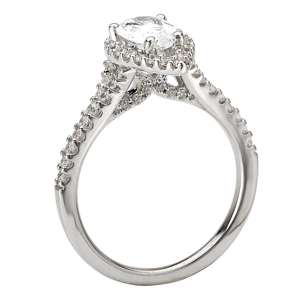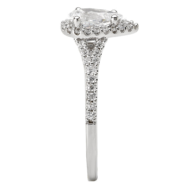 14kt White Gold Diamond Ring with a Pear Shaped Halo. (D 3/8 carat total weight) This item is a SEMI-MOUNT and it comes with NO CENTER STONE but it will accommodate a 8x5.5mm pear shaped center stone.