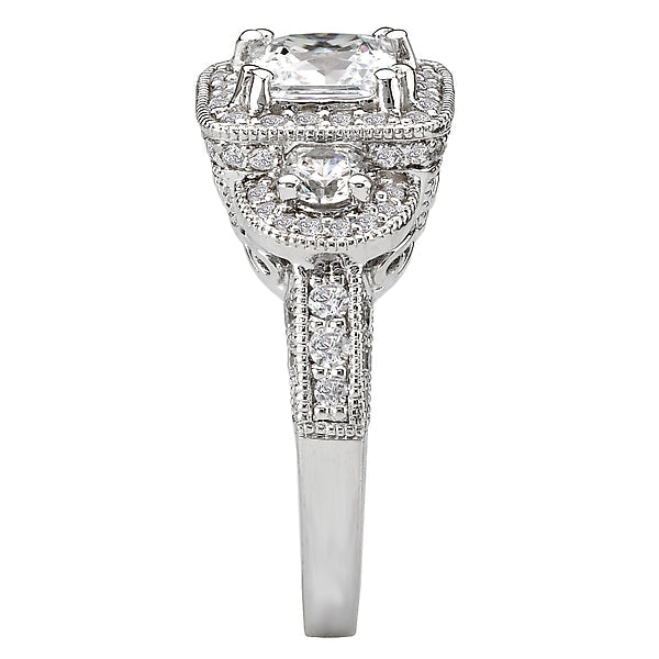 Vintage Style Pave' Set Diamond Ring with Filigree in 14kt White Gold (D. 1.0 carat total weight) This item is a SEMI-MOUNT and it comes with NO CENTER STONE as shown but it will accommodate a 5-5.5mm princess cut center stone.