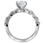 This classic bridal ring sparkles with round and marquise shaped diamonds along the 14kt white gold shaft and a center setting that will accommodate a 7.5x5.5mm oval stone. (D 1/3ctw)