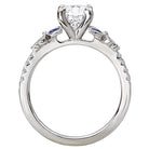 Diamonds line the shank of this beautiful ring and marquise cut sapphires are on either side of a setting that will accommodate a 6.5mm round diamond. (D 1/8 carat total weight, S 1/5 carat total weight)