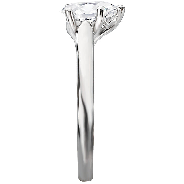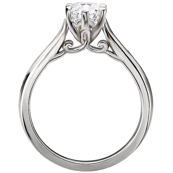 High polished 14kt white gold semi-mount solitaire engagement ring. This setting will accommodate a 8x5.5mm pear shaped diamond, sold separately.