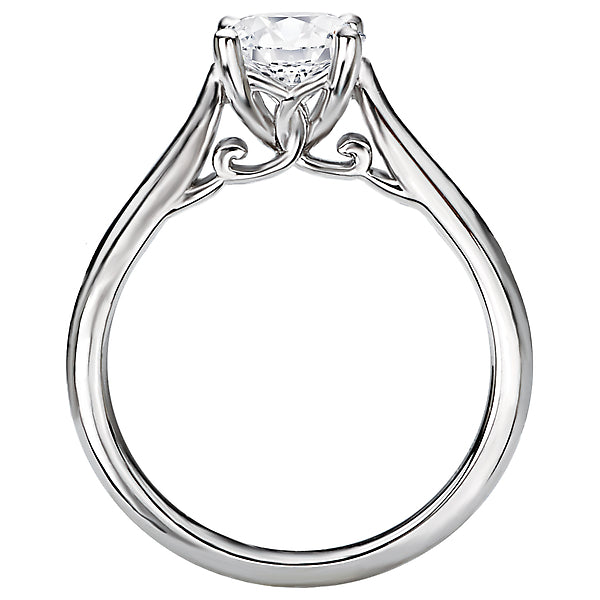High polished 14kt white gold semi-mount solitaire engagement ring. This setting will accommodate a 6.5mm round diamond, sold separately.