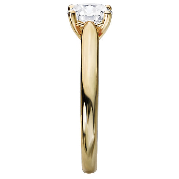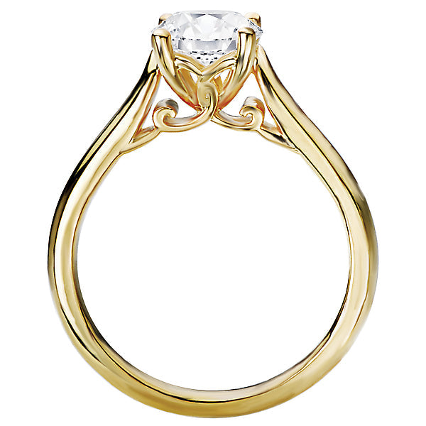 High polished 14kt yellow gold semi-mount solitaire engagement ring. This setting will accommodate a 6.5mm round diamond, sold separately.