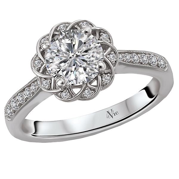 14KW LV FLORAL HALO DIA SM MILGRN, D1/8CTW, FIT 6.5MM RD