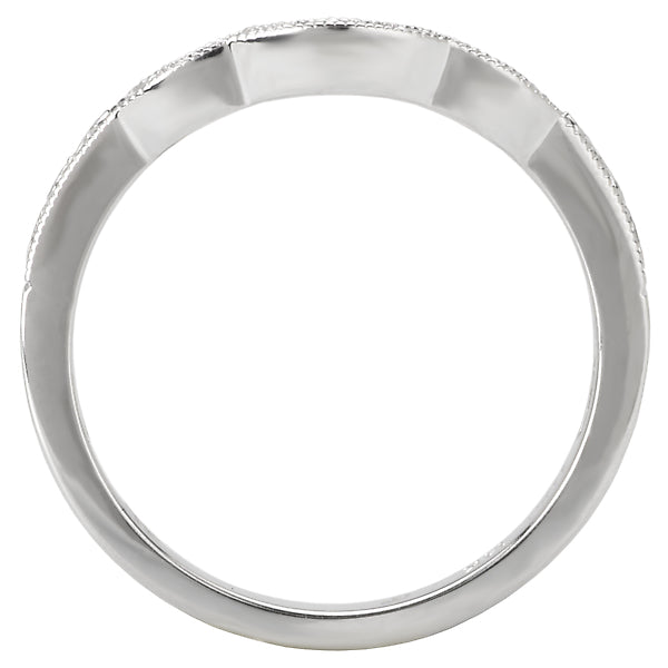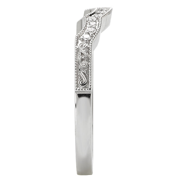 This is a matching scalloped diamond wedding band featuring milgrain and engraving detail in 14k white gold. (D .07 carat total weight)