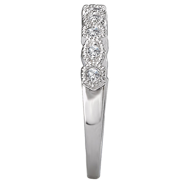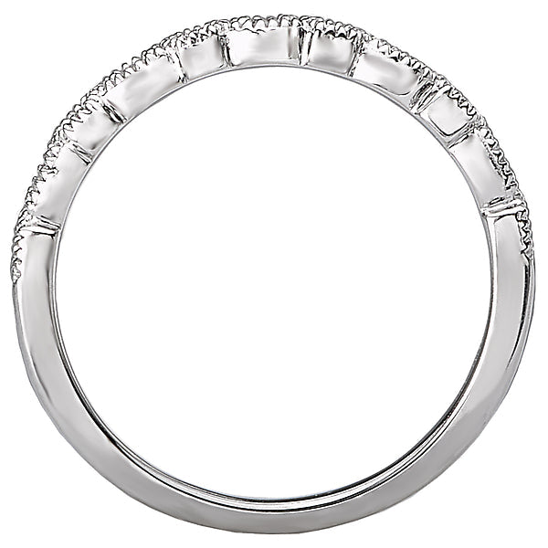 This is a matching faceted diamond wedding band with milgrain crafted in 14kt white gold. (D 1/6 carat total weight)