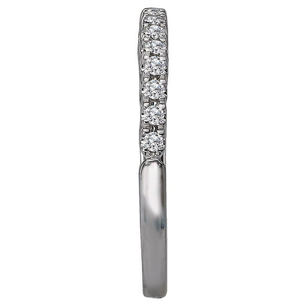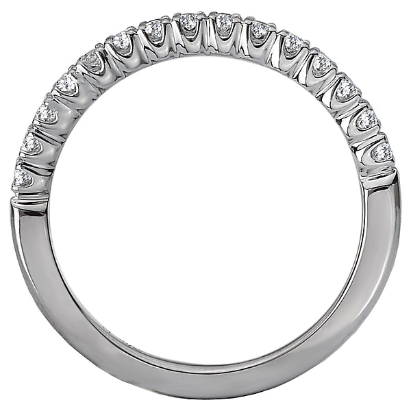 This is a matching wedding band with round faceted diamonds set in 14kt white gold. (D 1/6 carat total weight)