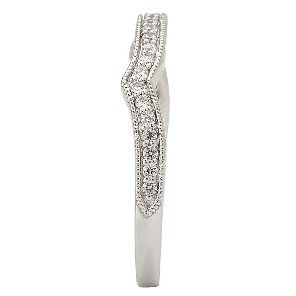 Scalloped Matching Diamond Wedding Band in 14kt White Gold with Milgrain Detail. (D 1/6 carat total weight)