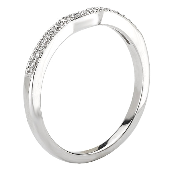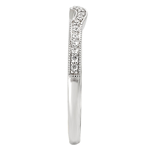 Matching Curved Diamond Wedding Band in 14kt White Gold with Milgrain Detail. (D.09 carat total weight)