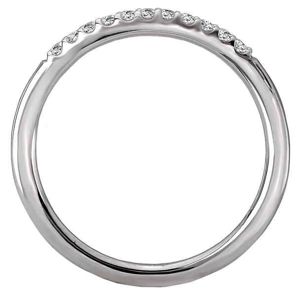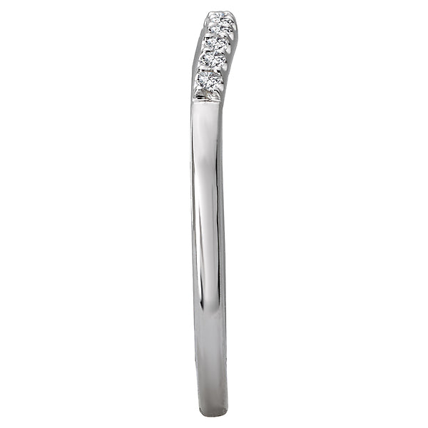 This curved wedding band features round faceted diamonds set in 14kt white gold band. (D .09 carat total weight)