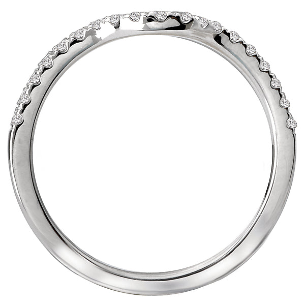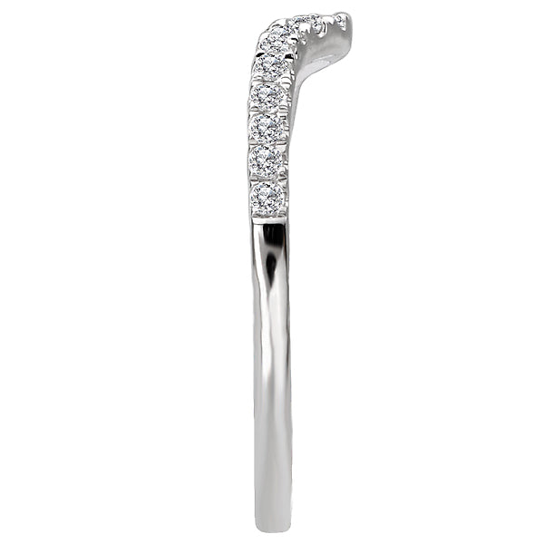 This curved matching wedding band features round faceted diamonds set in 14k white gold. (D 1/5 carat total weight)