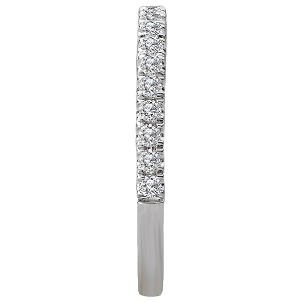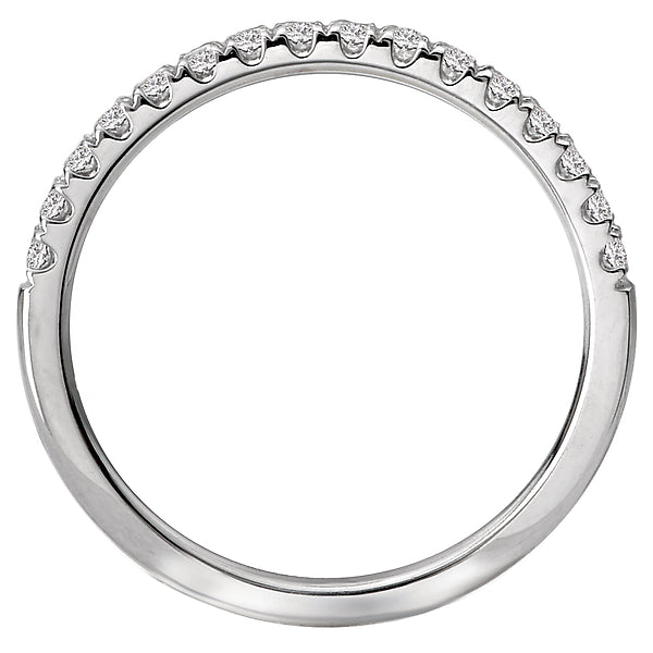 This is a matching wedding band with round faceted diamonds set in 14kt white gold. (D 1/5 carat total weight)