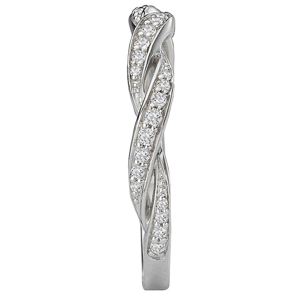 This is a Matching Wedding Band created with a Twisted Shank filled with Graduated Round Diamonds set in 14kt White Gold. (D 1/6 carat total weight)