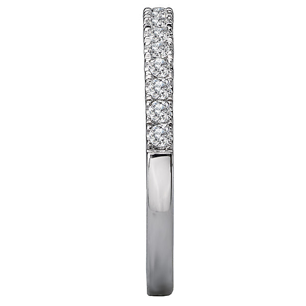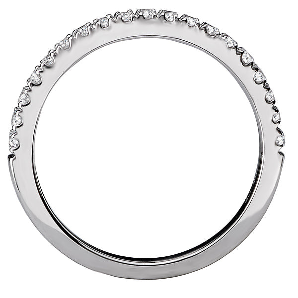 This is a matching wedding band with round faceted diamonds set in 14kt white gold. (D 1/3 carat total weight)