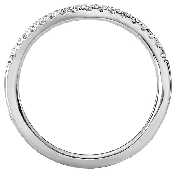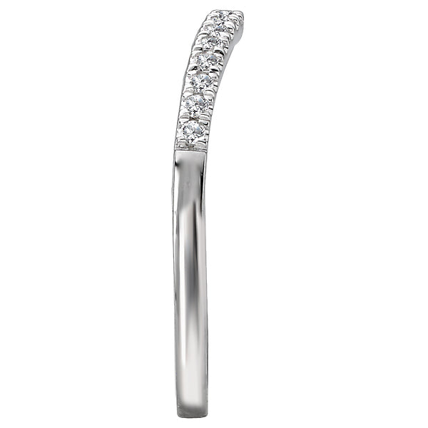 This curved wedding band features round faceted diamonds set in 14kt white gold. (D 1/7 carat total weight)