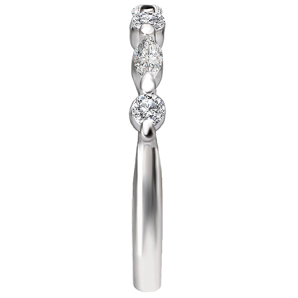 This matching wedding band has beautiful marquise and round diamonds set in polished 14kt white gold. (D 1/3 carat total weight)