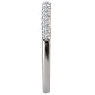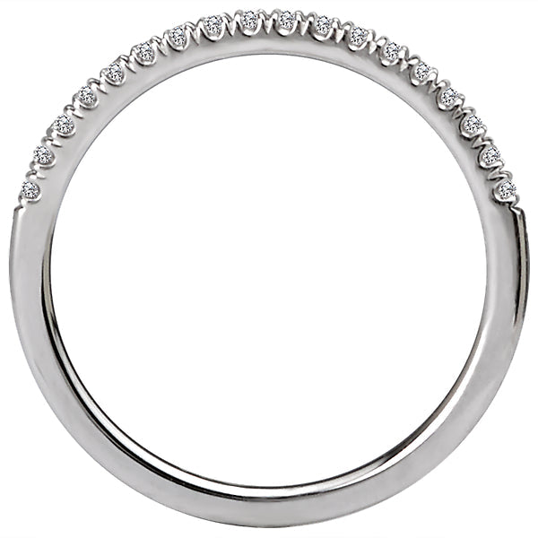 This wedding band features a row of sparkling round diamonds micro set in polished 14kt white gold. (D 1/7 carat total weight)